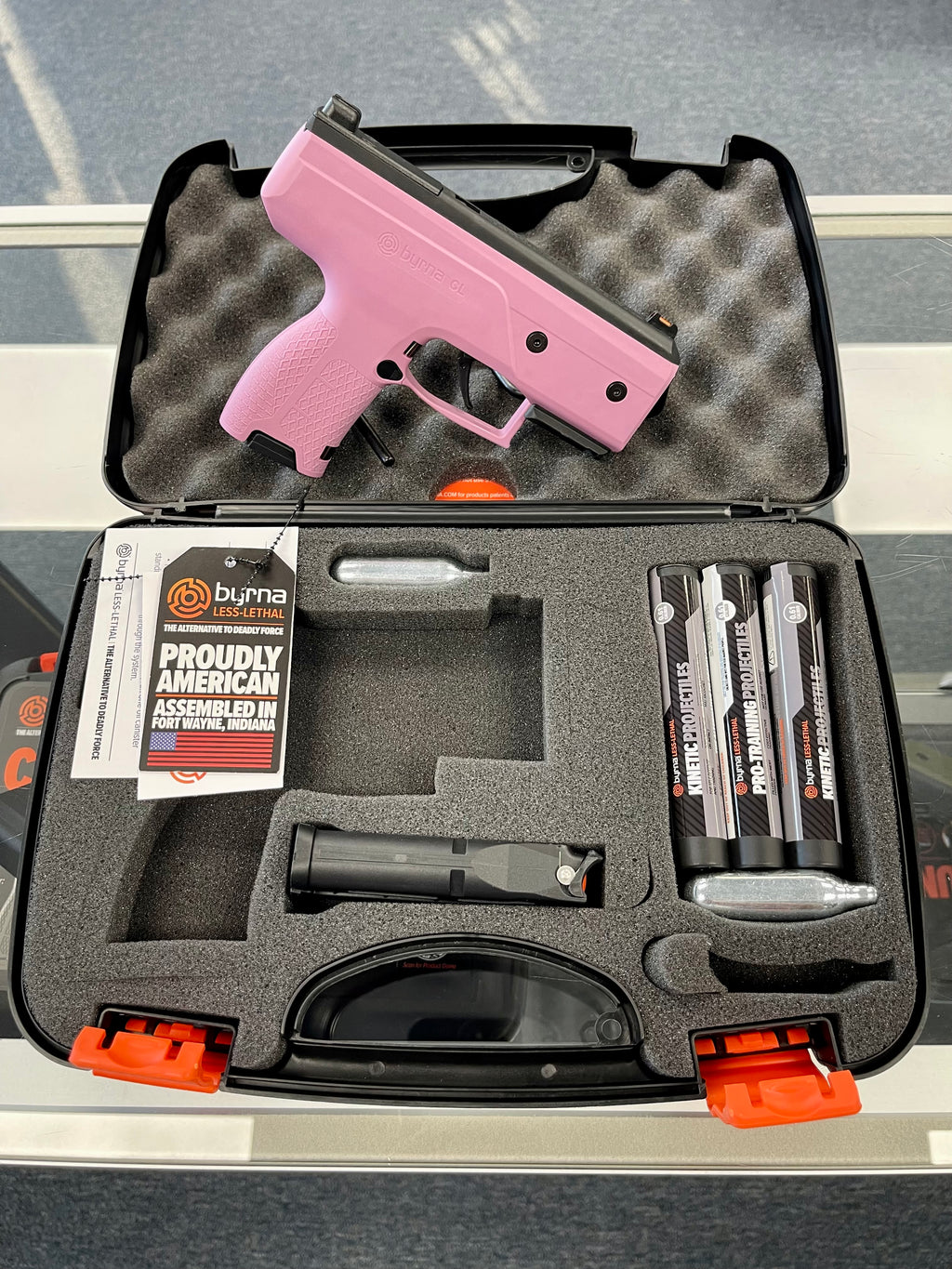 The Byrna CL is our most compact less-lethal pistol. This kit contains no chemical projectiles and is legal in all states in the US.